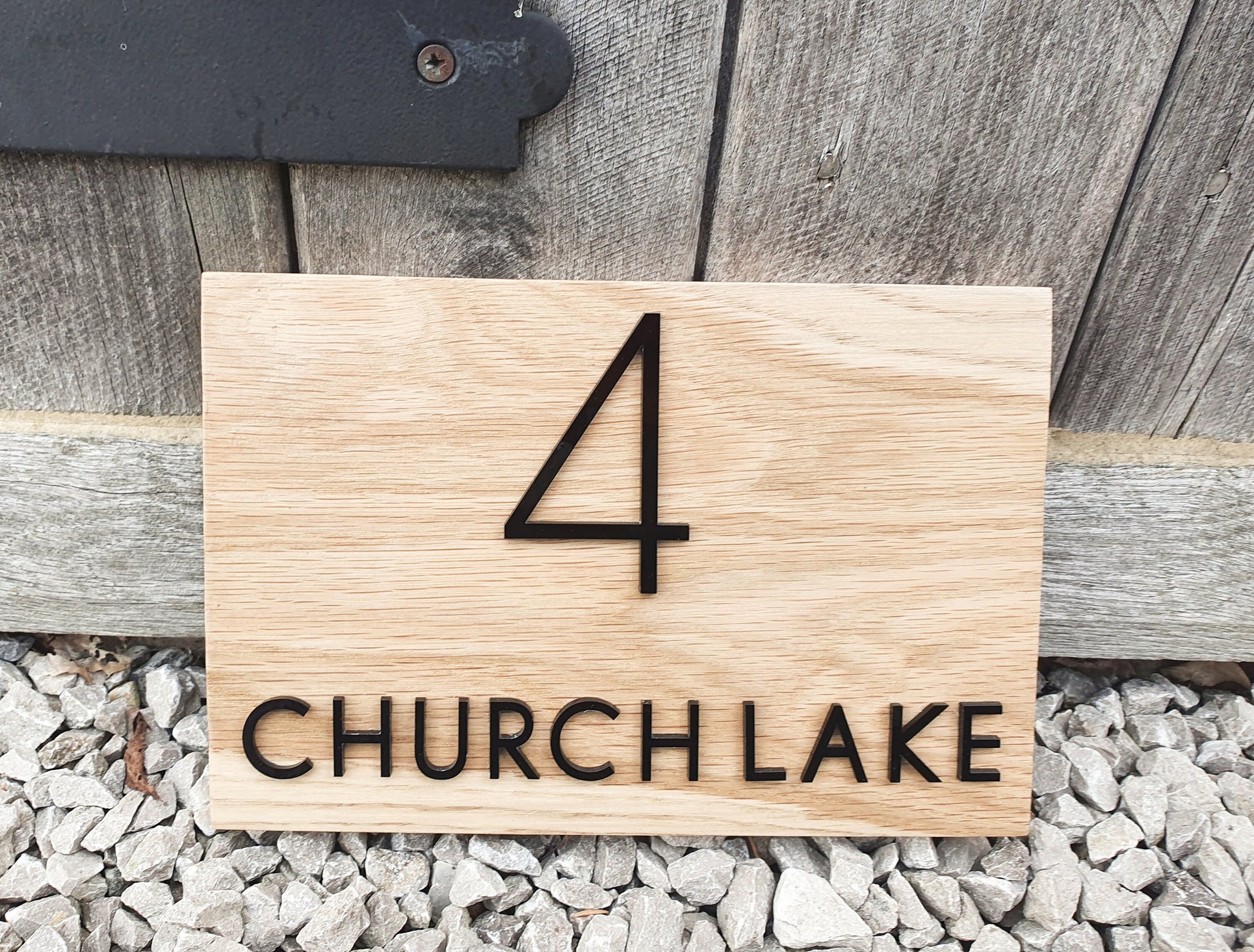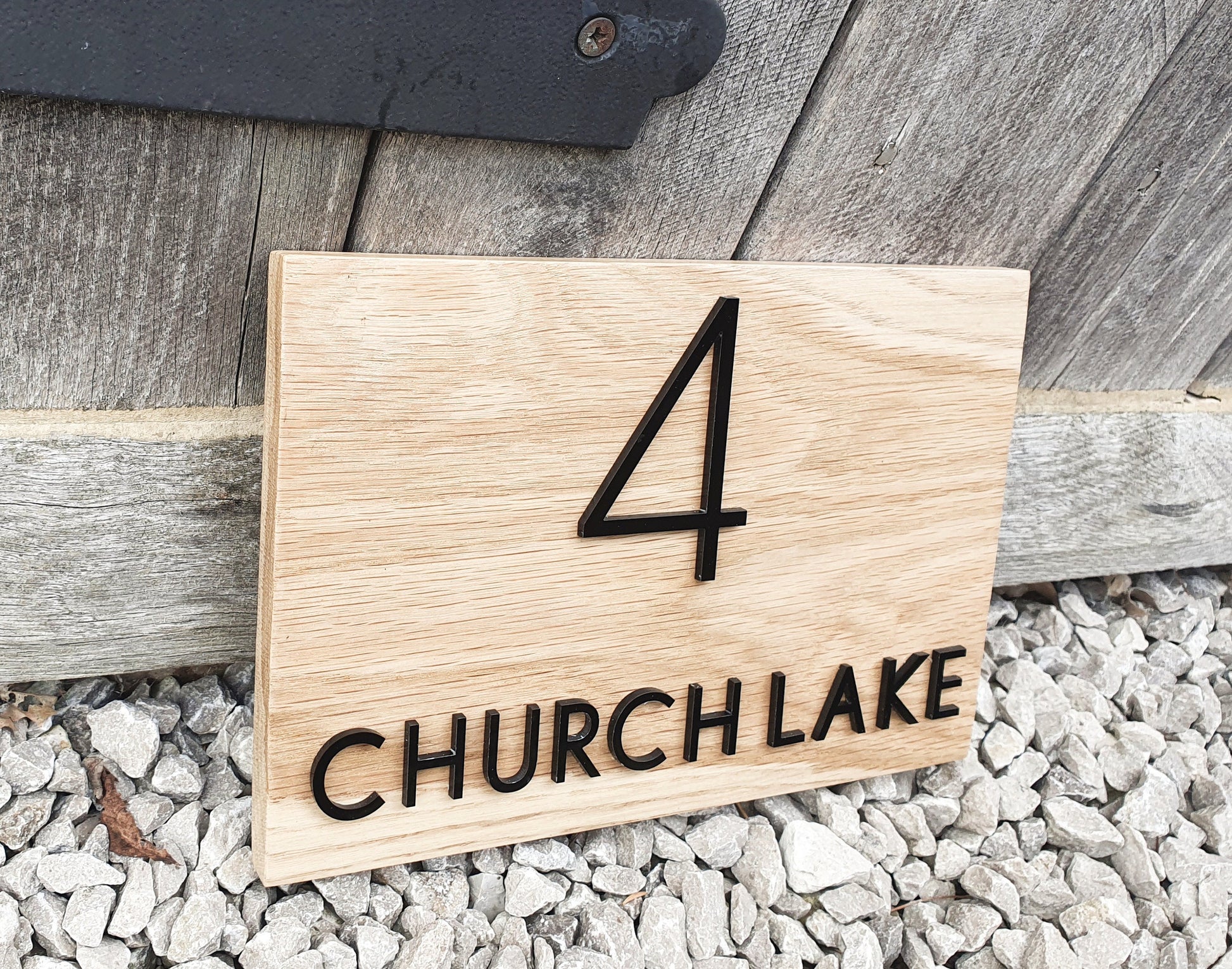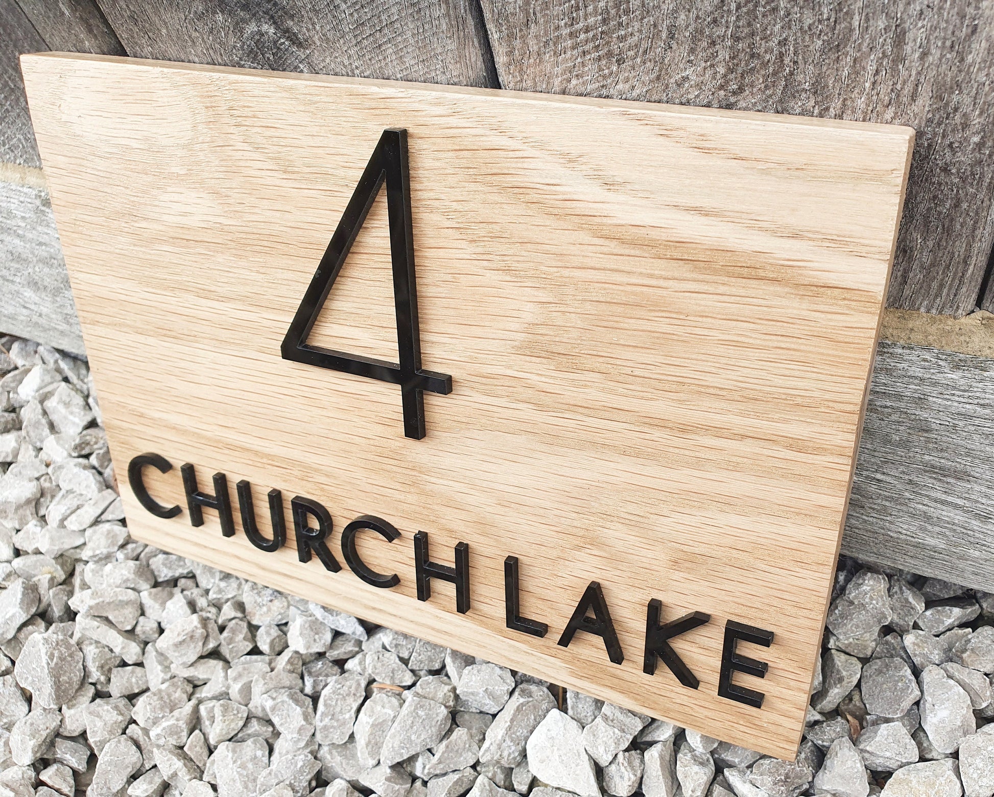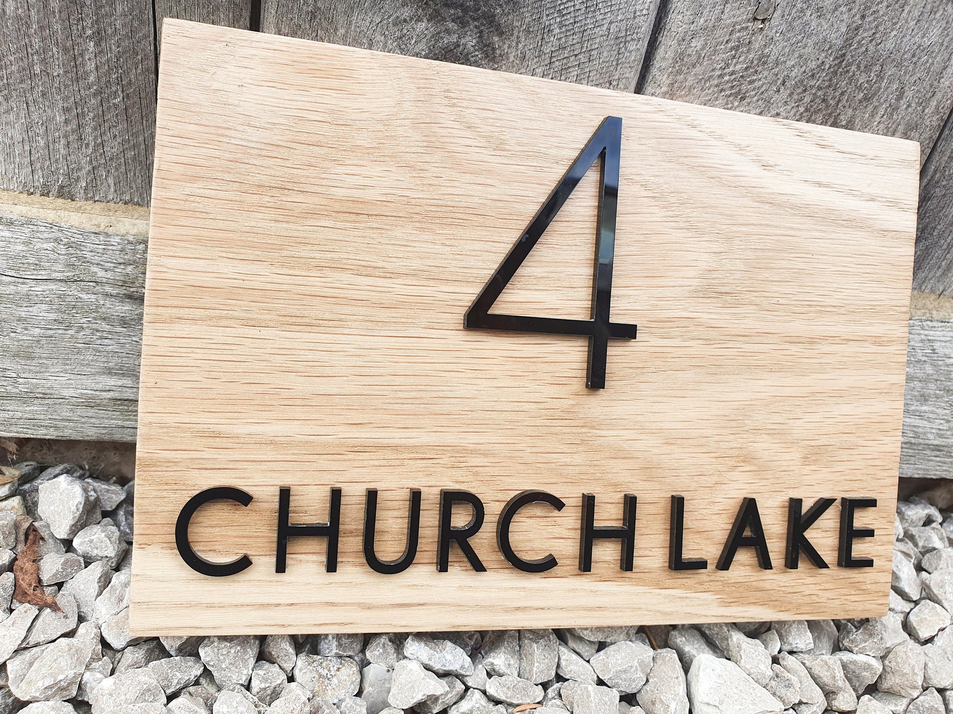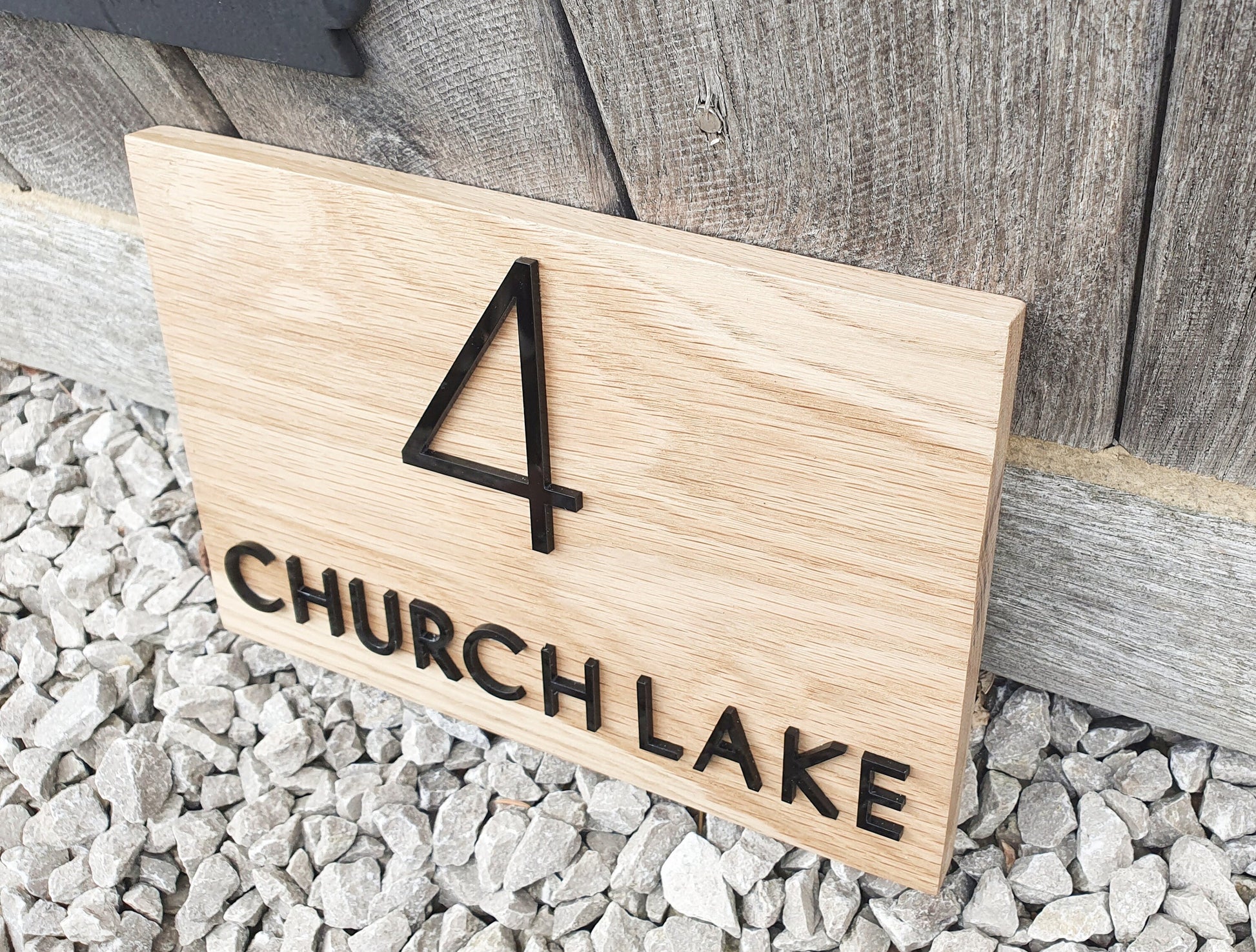 Address Sign Made From a Solid Oak Base and Raised Black Acrylic- House Number and Name Wood Plaque - Oak House Number and Name Sign