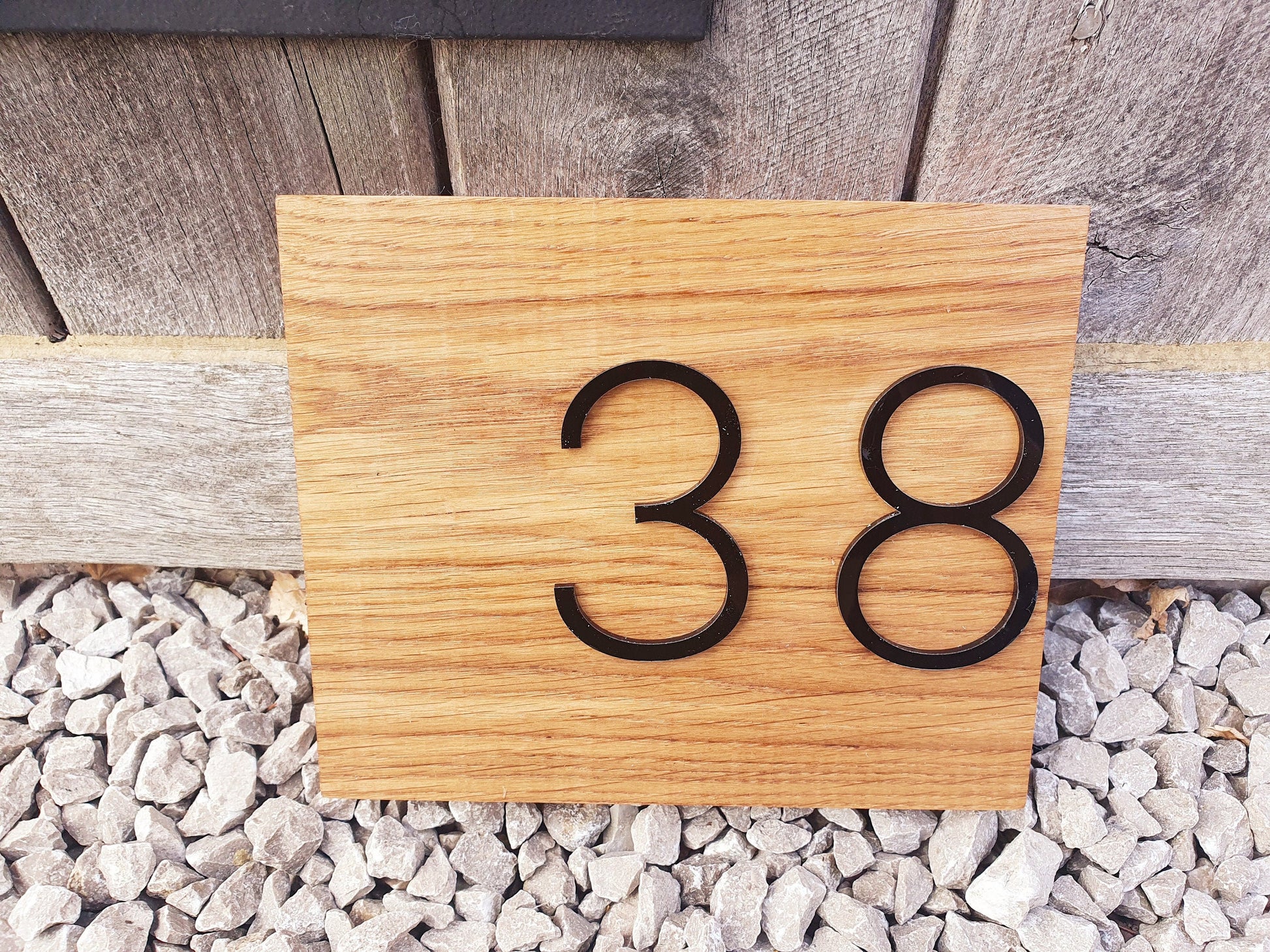 The house number base is coated in a lacquer (osmo oil) that prevents it getting damaged by the weather and the black acrylic is long lasting. A house number sign that is both eye-catching and modern.
