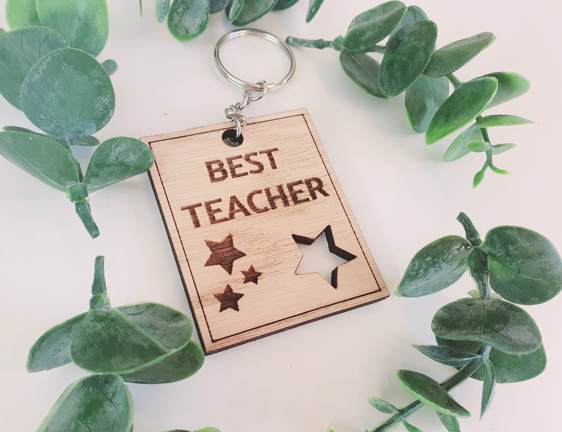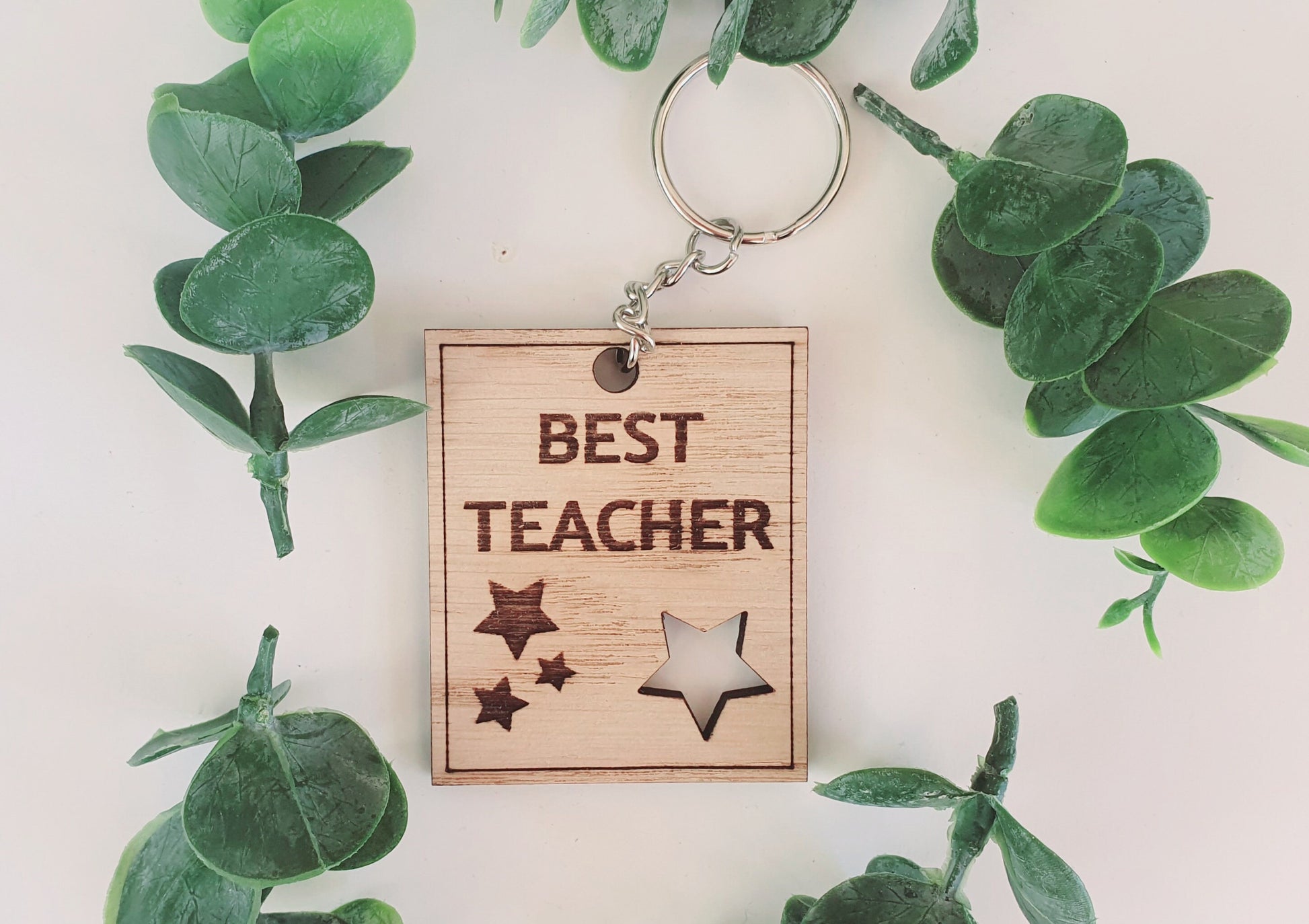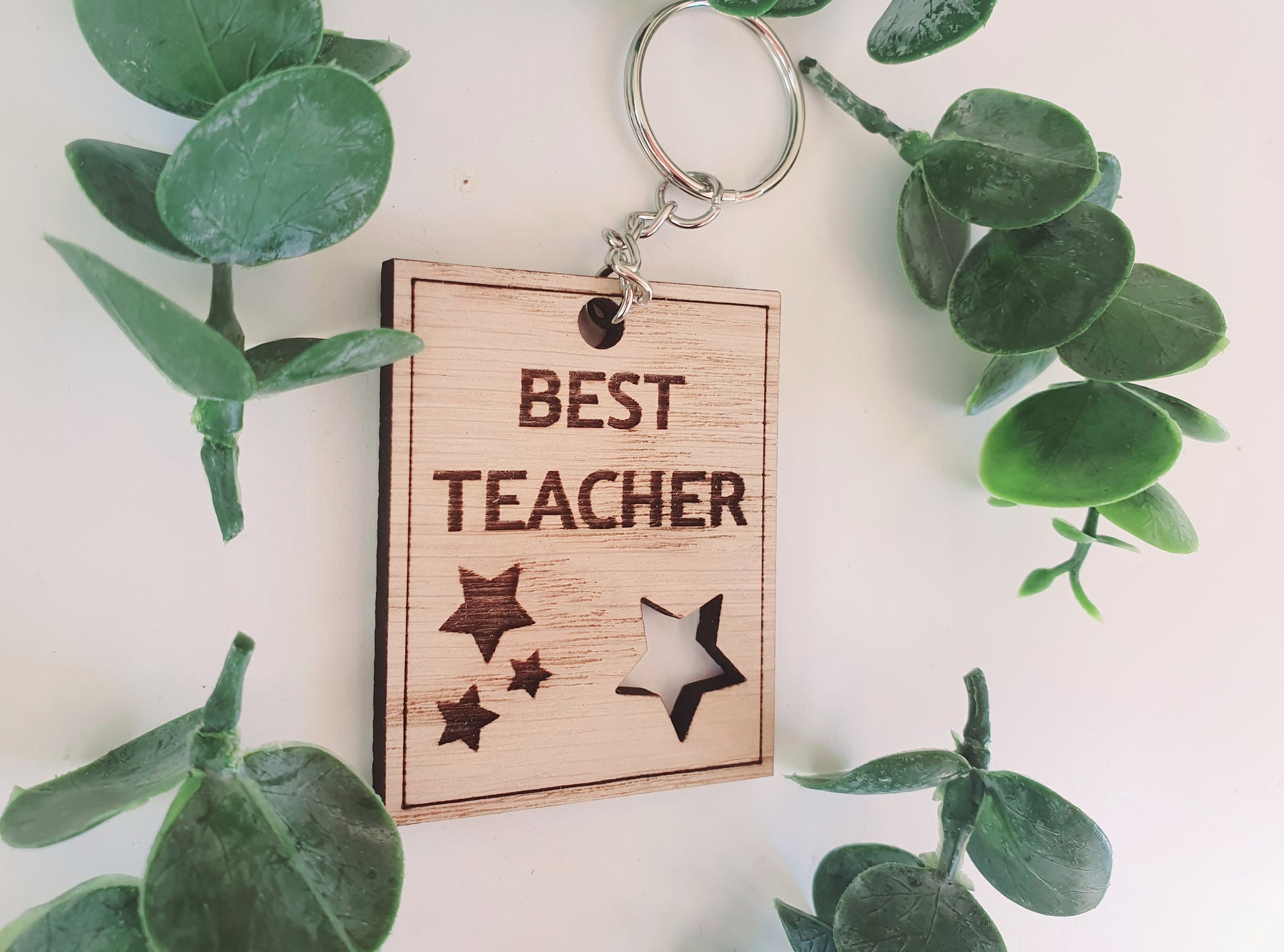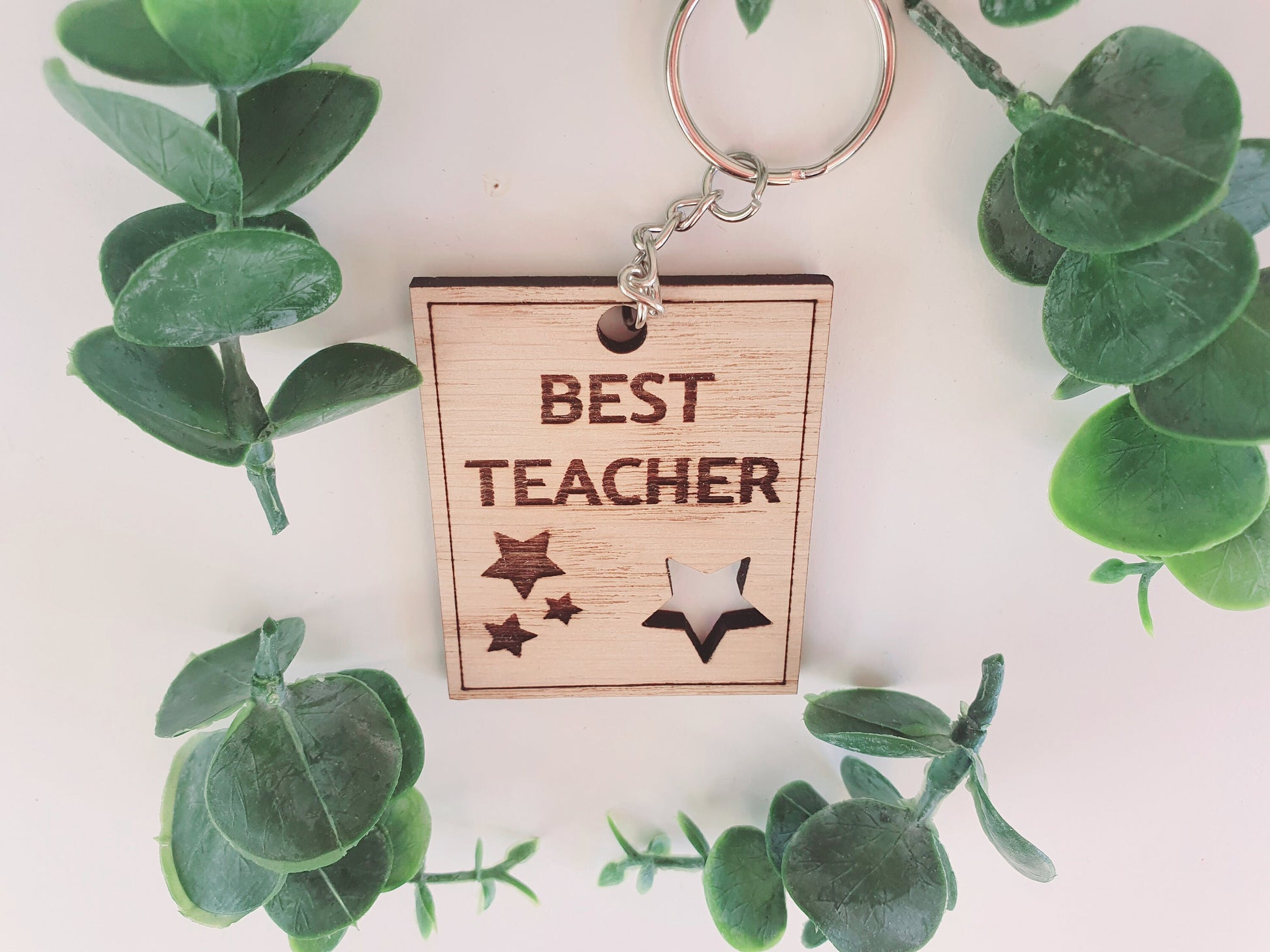 Best Teacher Wooden Keyring l End of Term Gift for Teacher l Nursery Teacher Gift l Childminder Gift - Small Gift for School Teacher