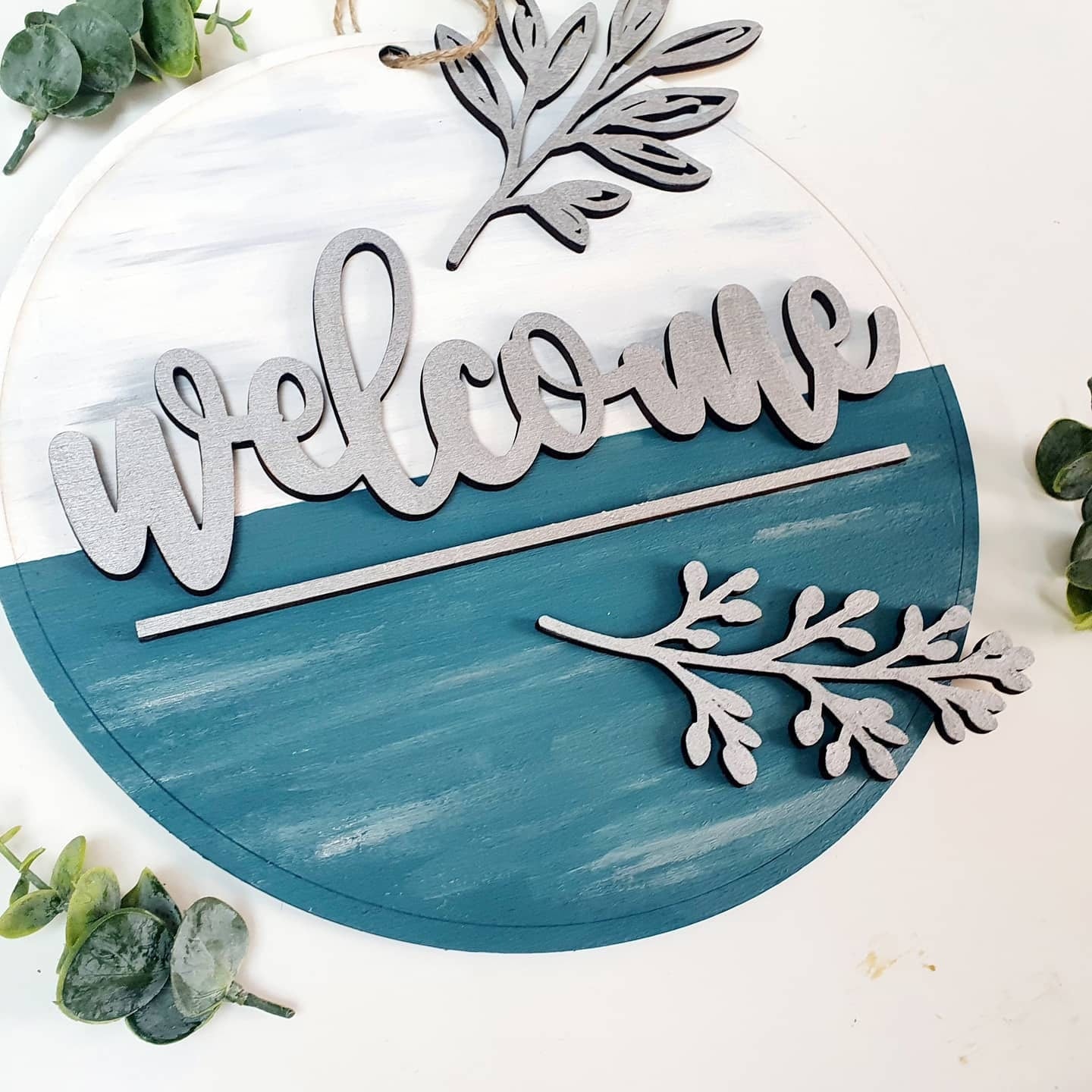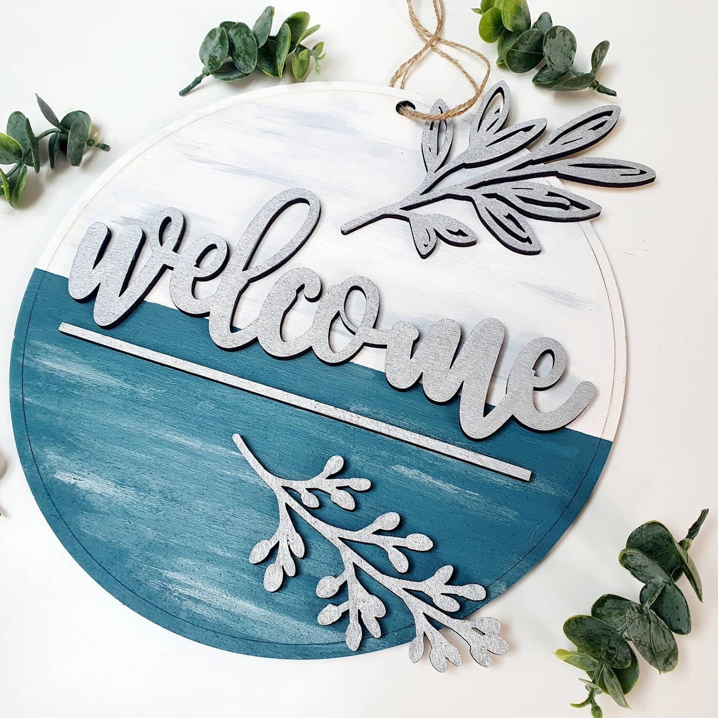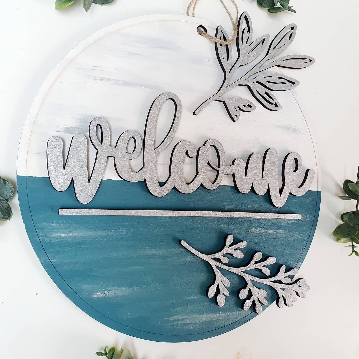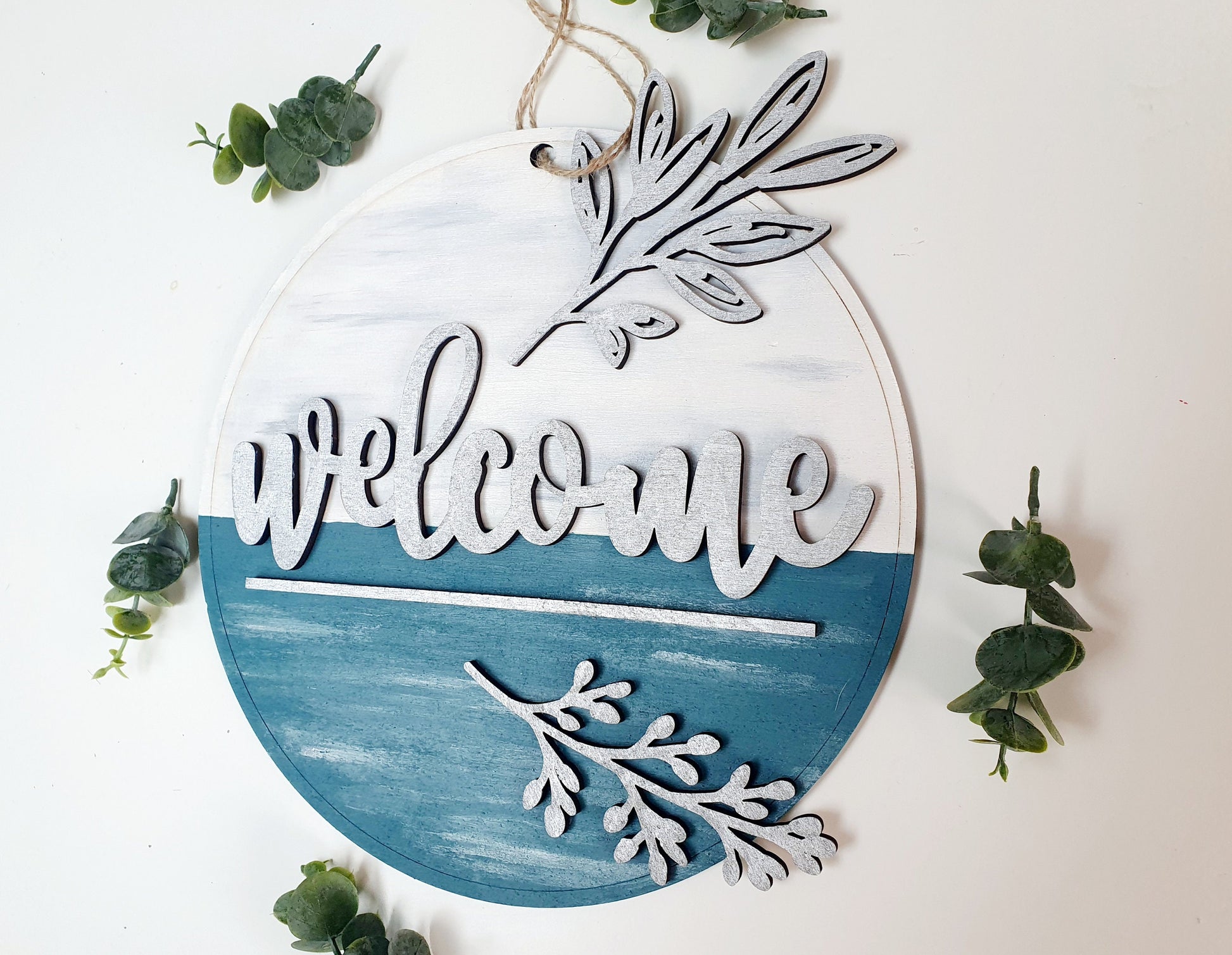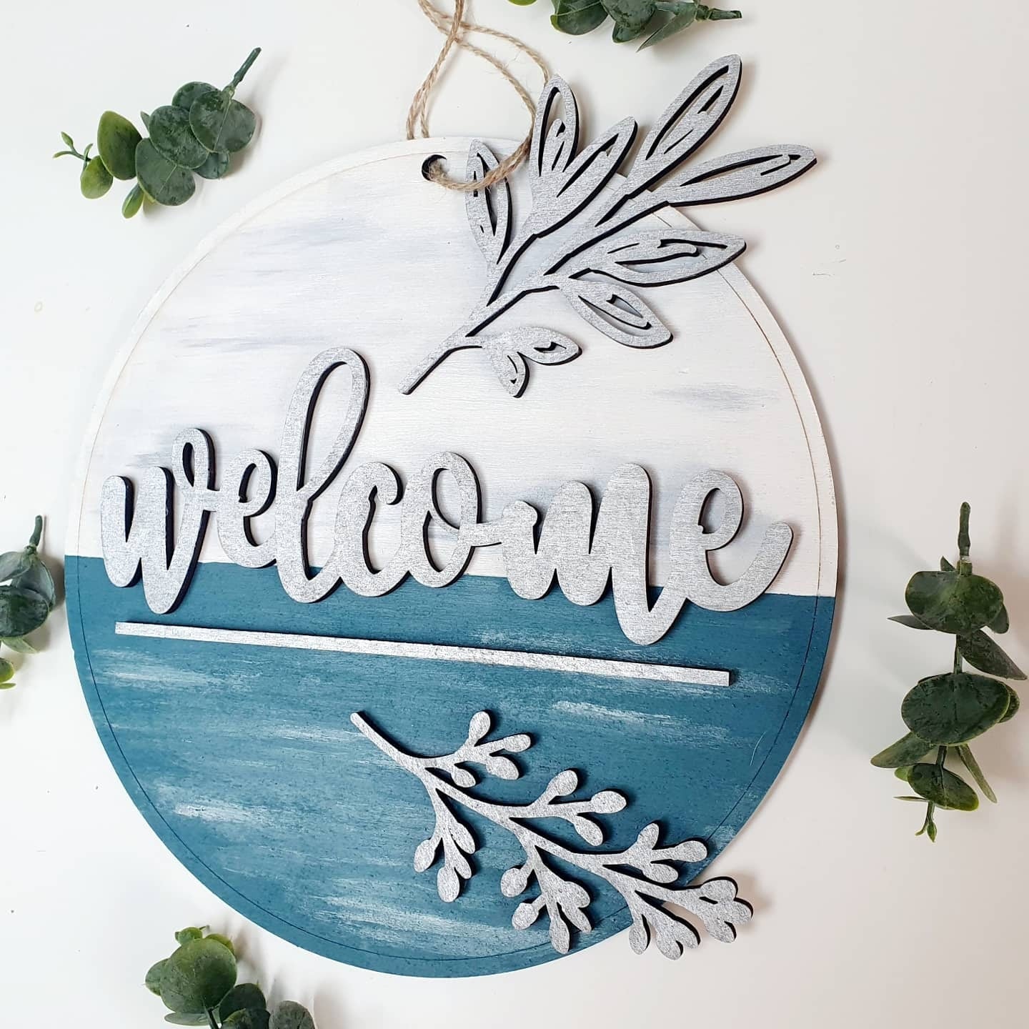 The sign is handpainted and comes in a range of colours. Pictured is our teal, silver and white home sign. It comes with twine to hang the sign wherever you would like. Our wooden door sign makes a lovely housewarming gift or birthday or christmas gift.