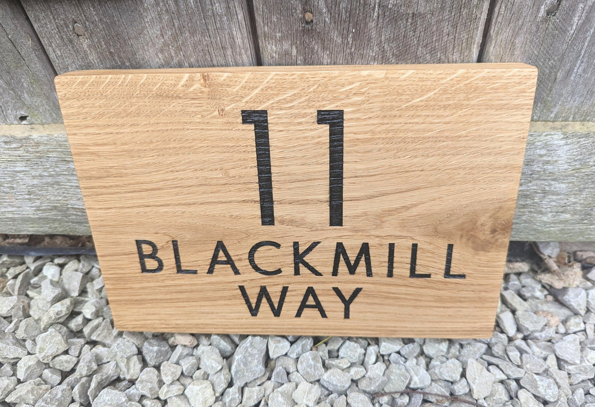 House Number and Street Oak Plaque. Engraved Address Oak Sign. Oak Engraved House Sign. Door Number Oak Sign.