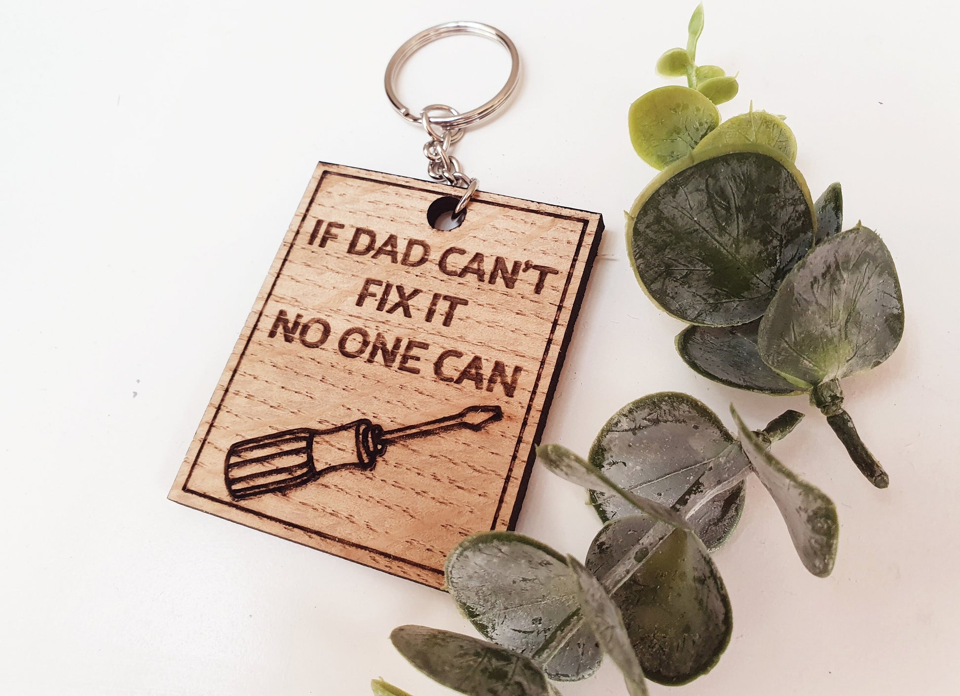 If Dad can't fix it no one can keyring - Wooden keyring for Dad - Small Father's Day gift