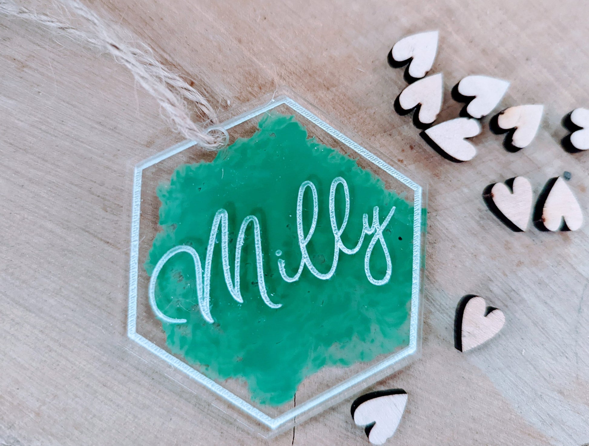 The wedding acrylic favours have a 3mm depth and height of 6cm and the name places are in a hexagon shape