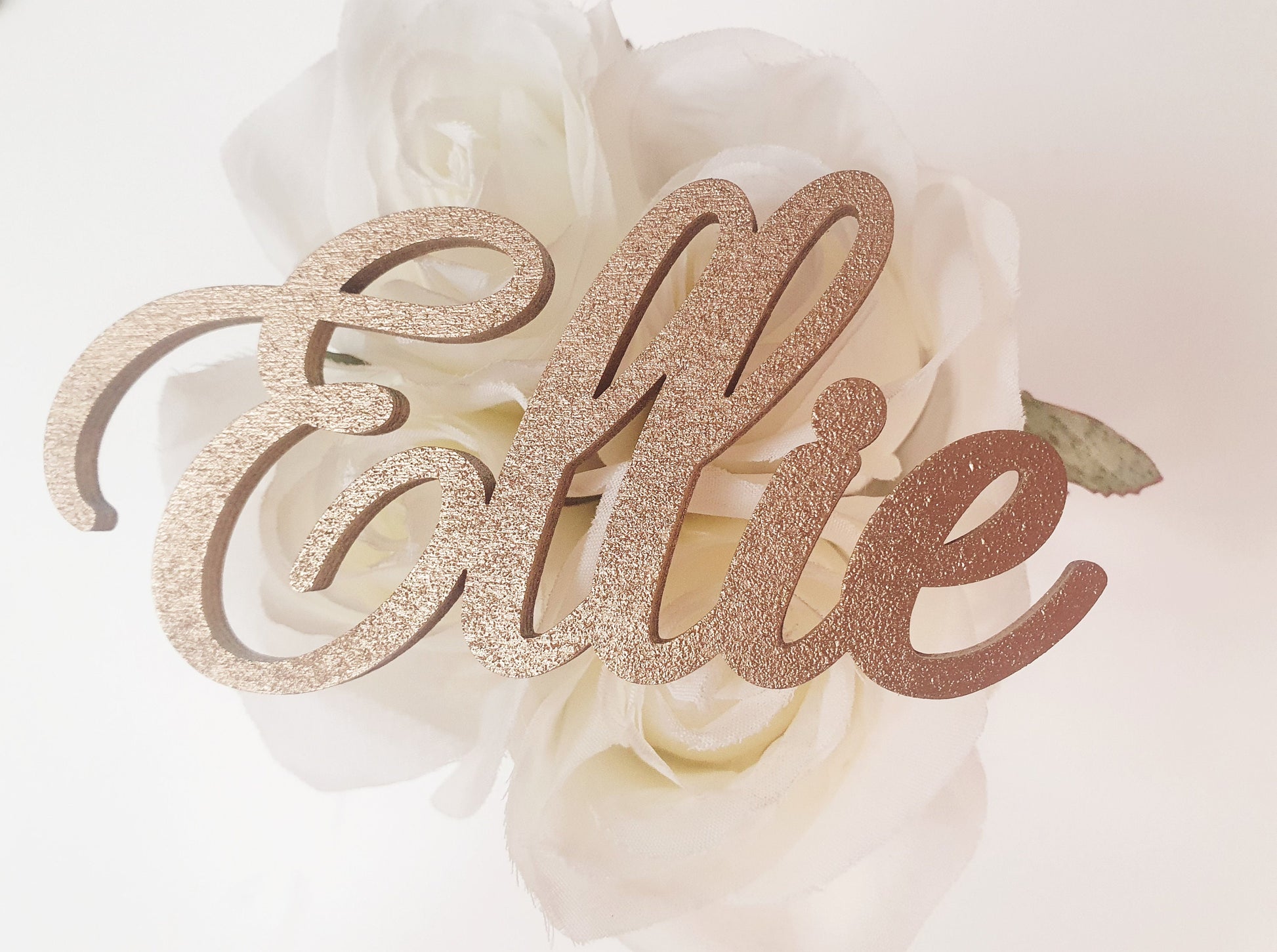The gold scriptive wedding wooden letter have a 4mm depth and height of 8cm and are made from MDF.