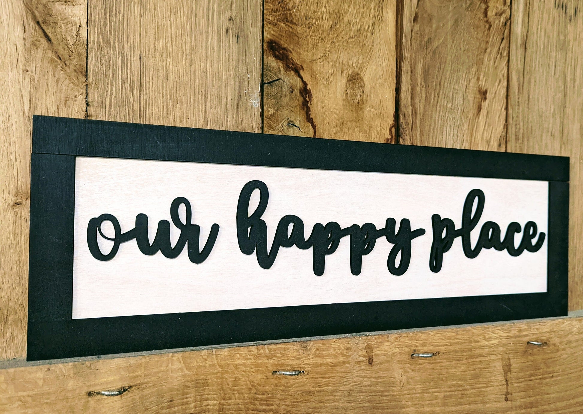 Our quote plaque 'Our Happy Place' makes a perfect homewarming, wedding or birthday gift. The sign has been designed and crafted by Cherry Lane Interiors and we're more than happy if you would like any tweaks made to the sign.