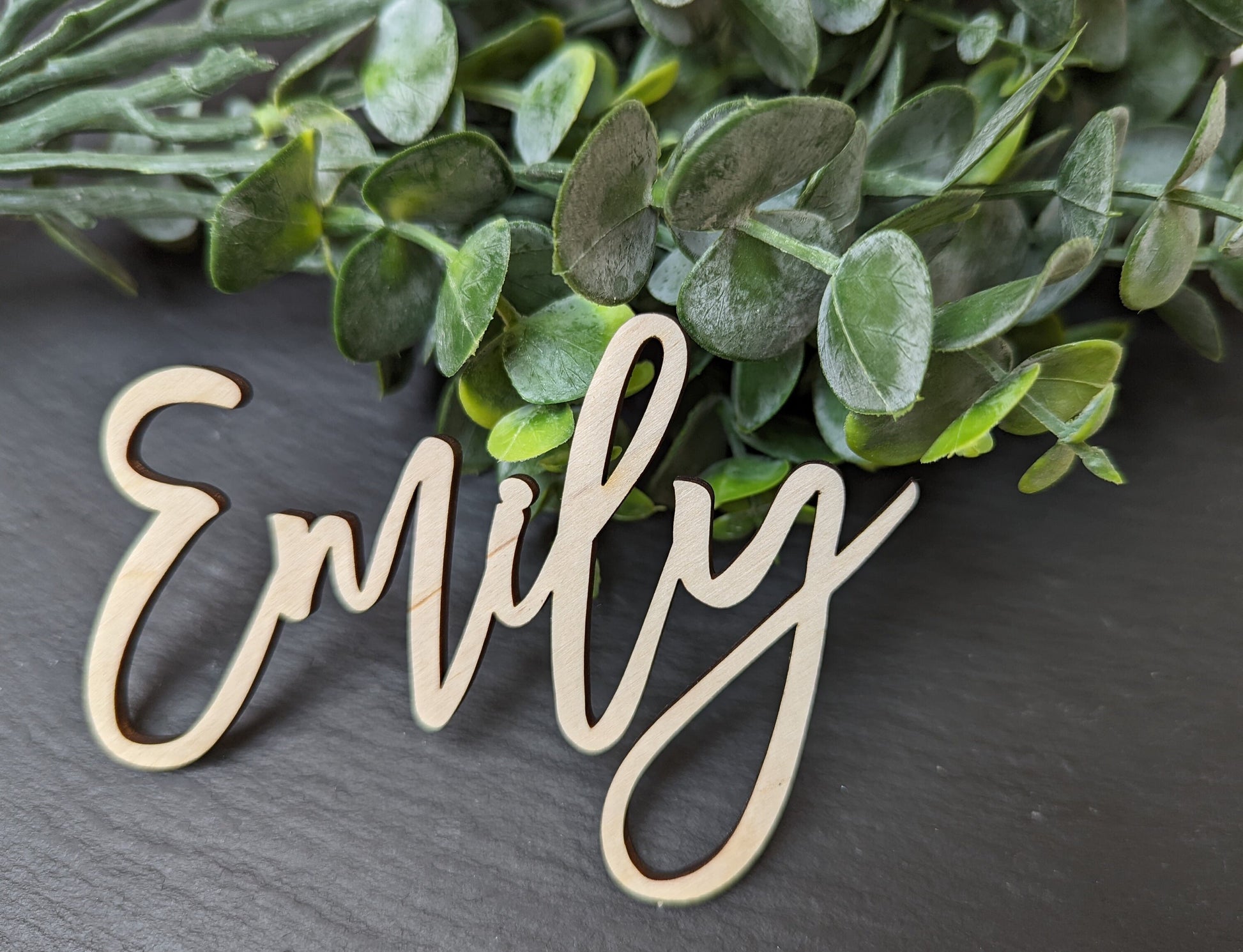 Personalised Birchwood Wedding Place Cards: Laser Cut Names
