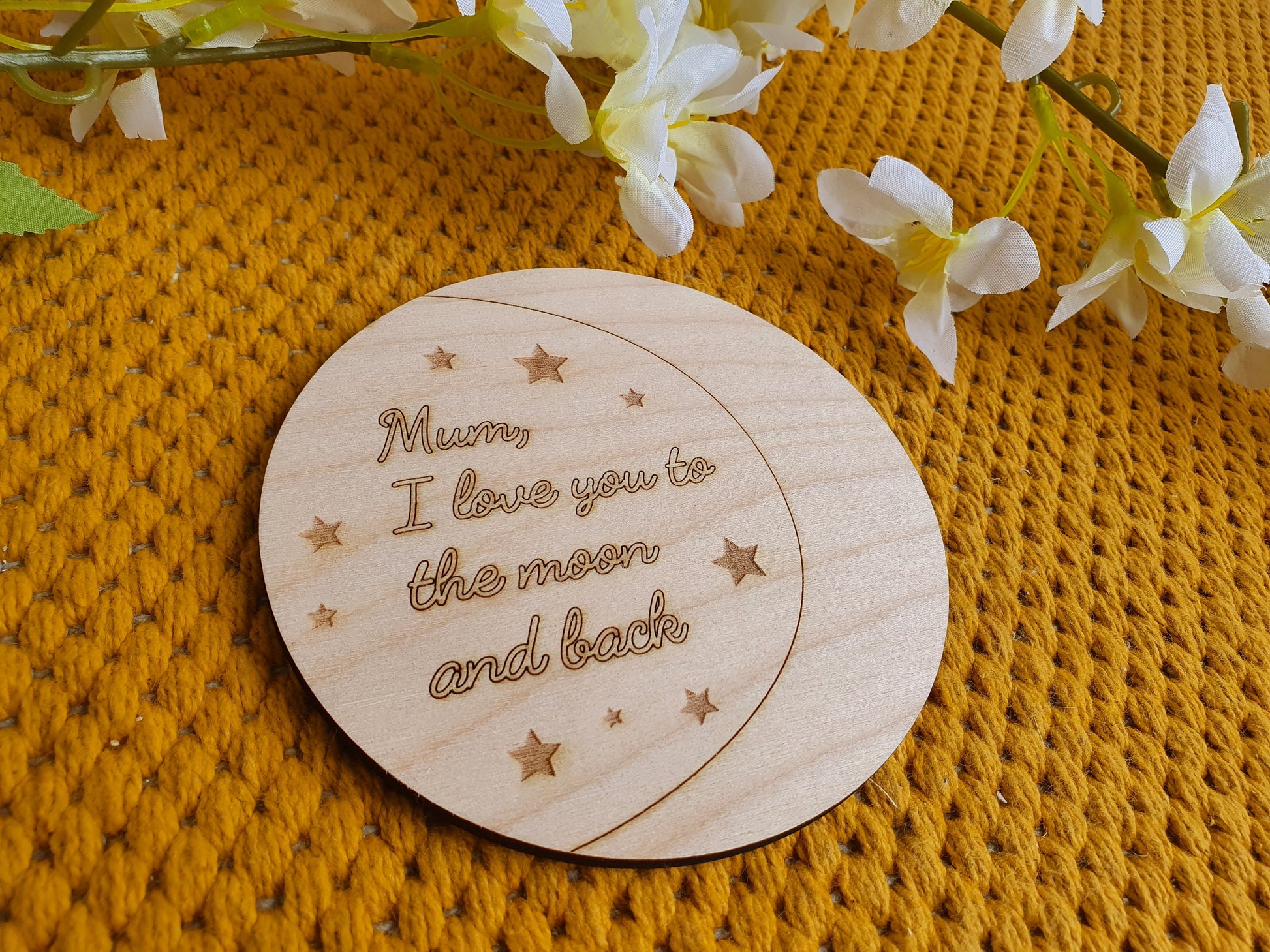 A set of three pretty coasters/decorative tiles. A perfect gift for any mum that can be personalised with any detail you would like. The coasters have been designed and crafted by Cherry Lane Interiors and are made out of Italian Poplar Plywood. Each coaster has a lovely little message. The star coaster says 'Mum you're a star, the heart says 'first my mum, forever my friend' and the moon coaster says, 'Mum, I love you to the moon and back.