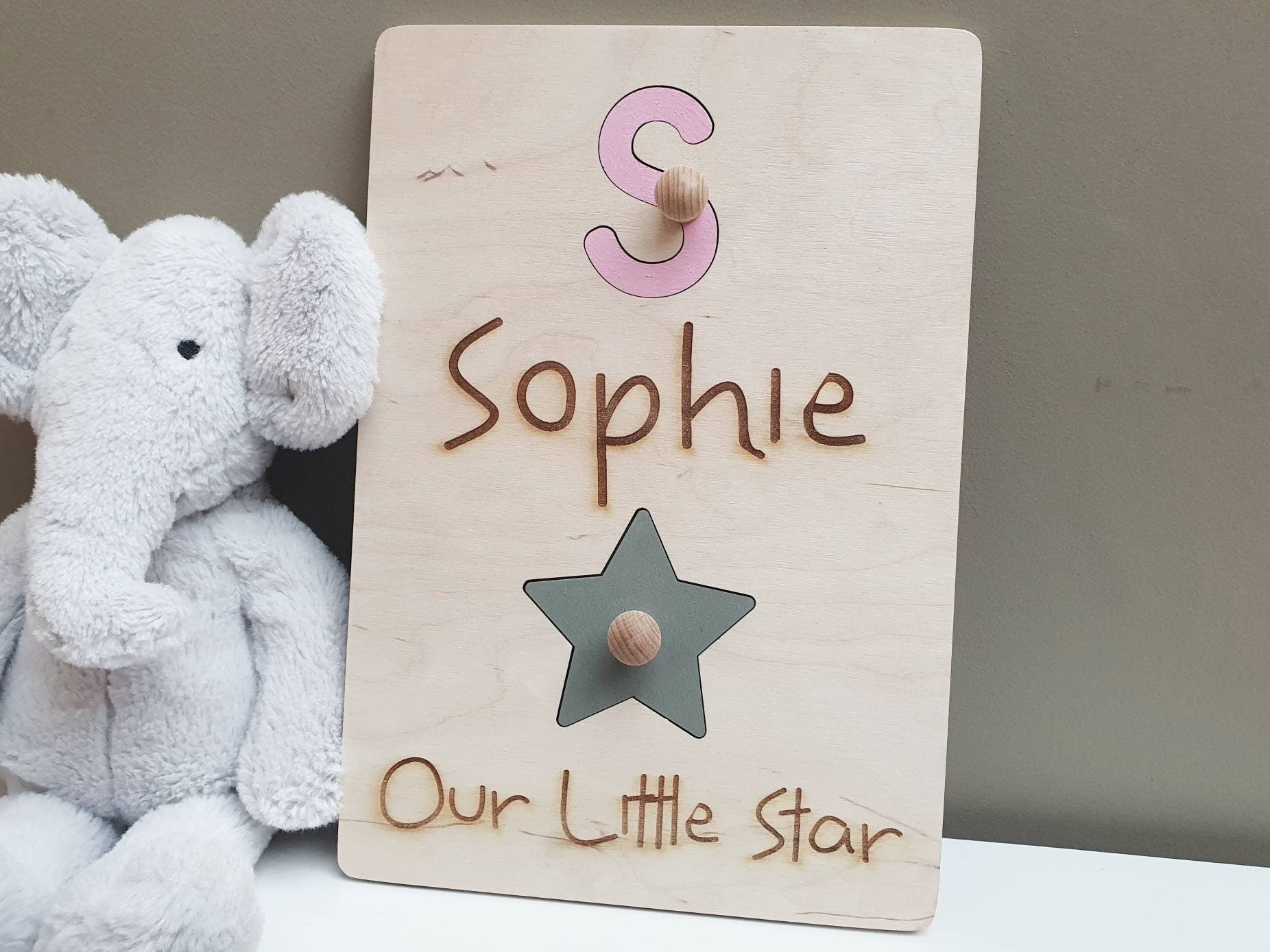 Personalised Wood Baby Initials Puzzle - Our Little Star Peg Board - Child Stocking Filler - Small Gift for Child - Range of Colours