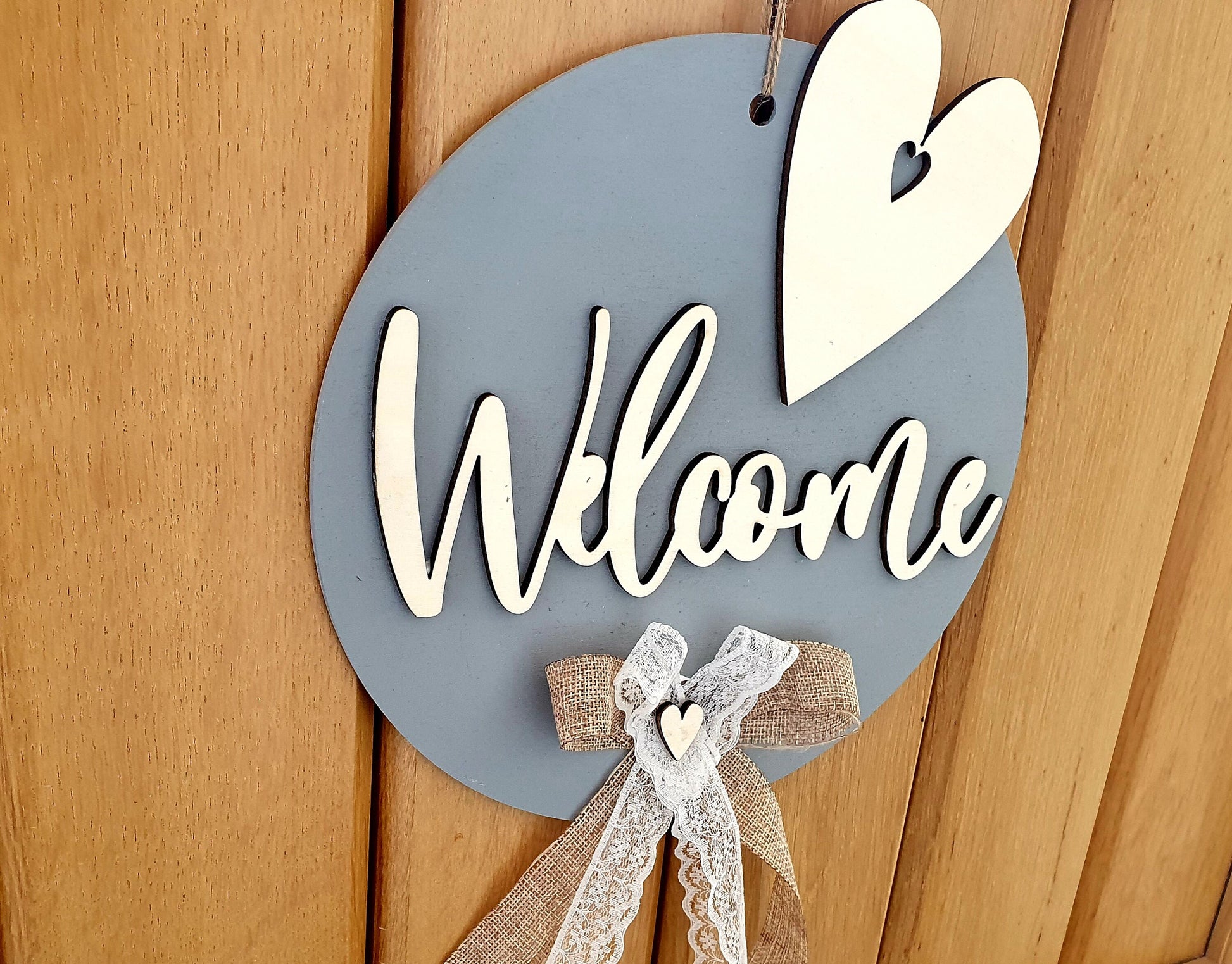 Our beautiful wooden 'Welcome' sign looks lovely on any door. The door hanger/wreath should be ideally kept indoors or in a porch. The welcome door sign has been designed and crafted by Cherry Lane Interiors with lots of love and hugs.