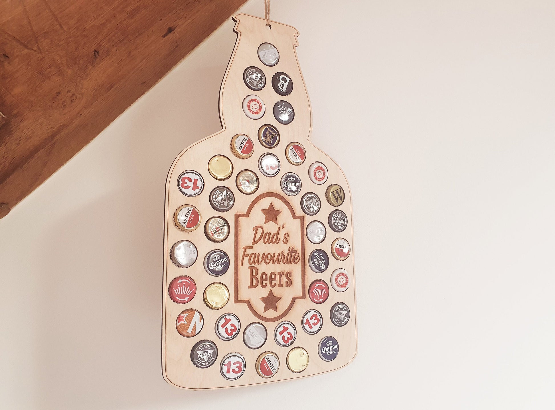 Wooden Beer Sign for Dad - Dad's Favourite Beers - Beer Bottle Cap/Top Collector - Gift for Dad