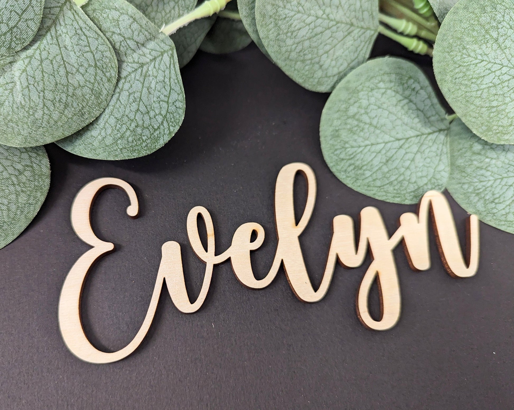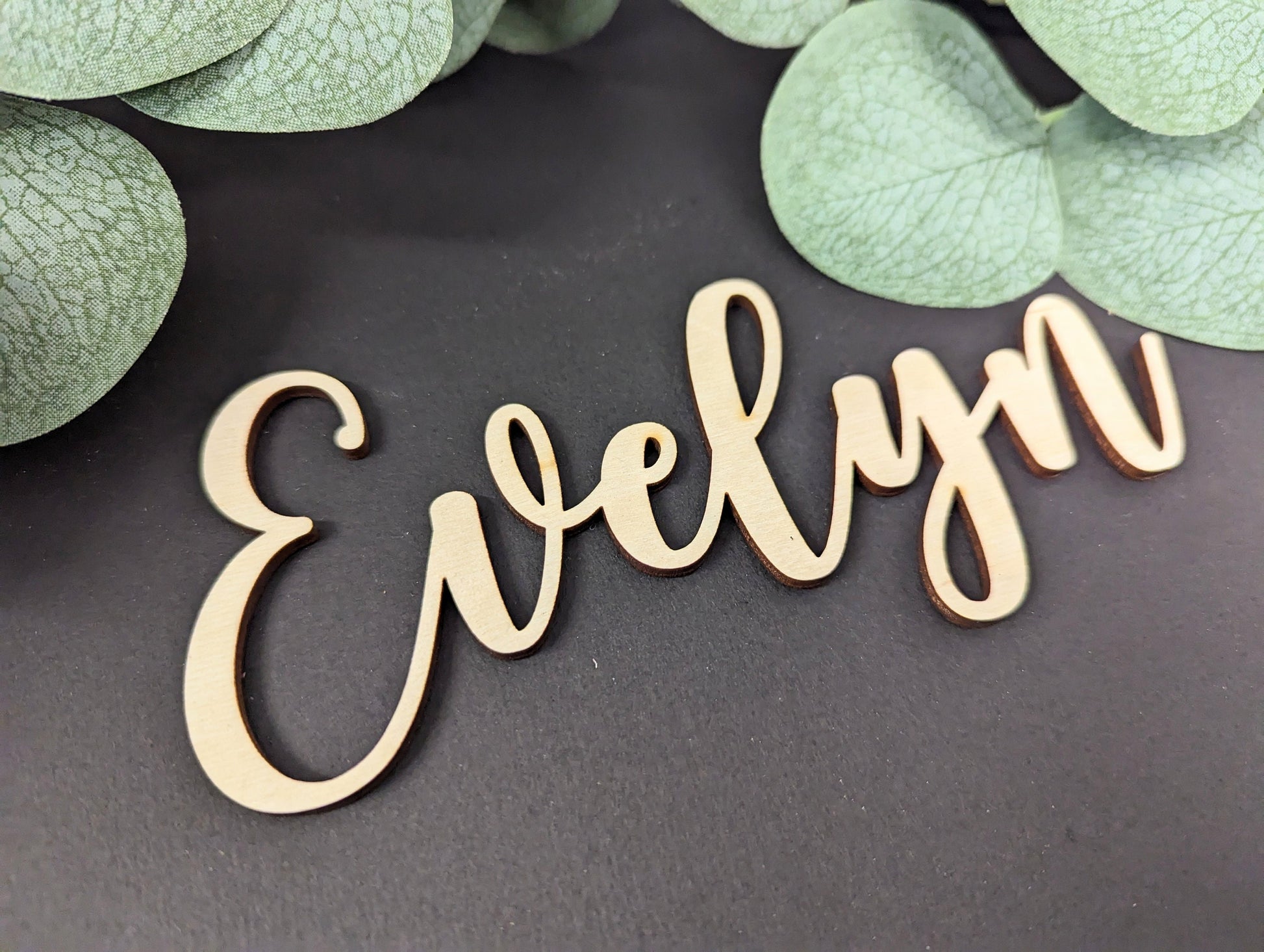 Wooden Wedding Name Place Cards, Cursive Calligraphy Favors