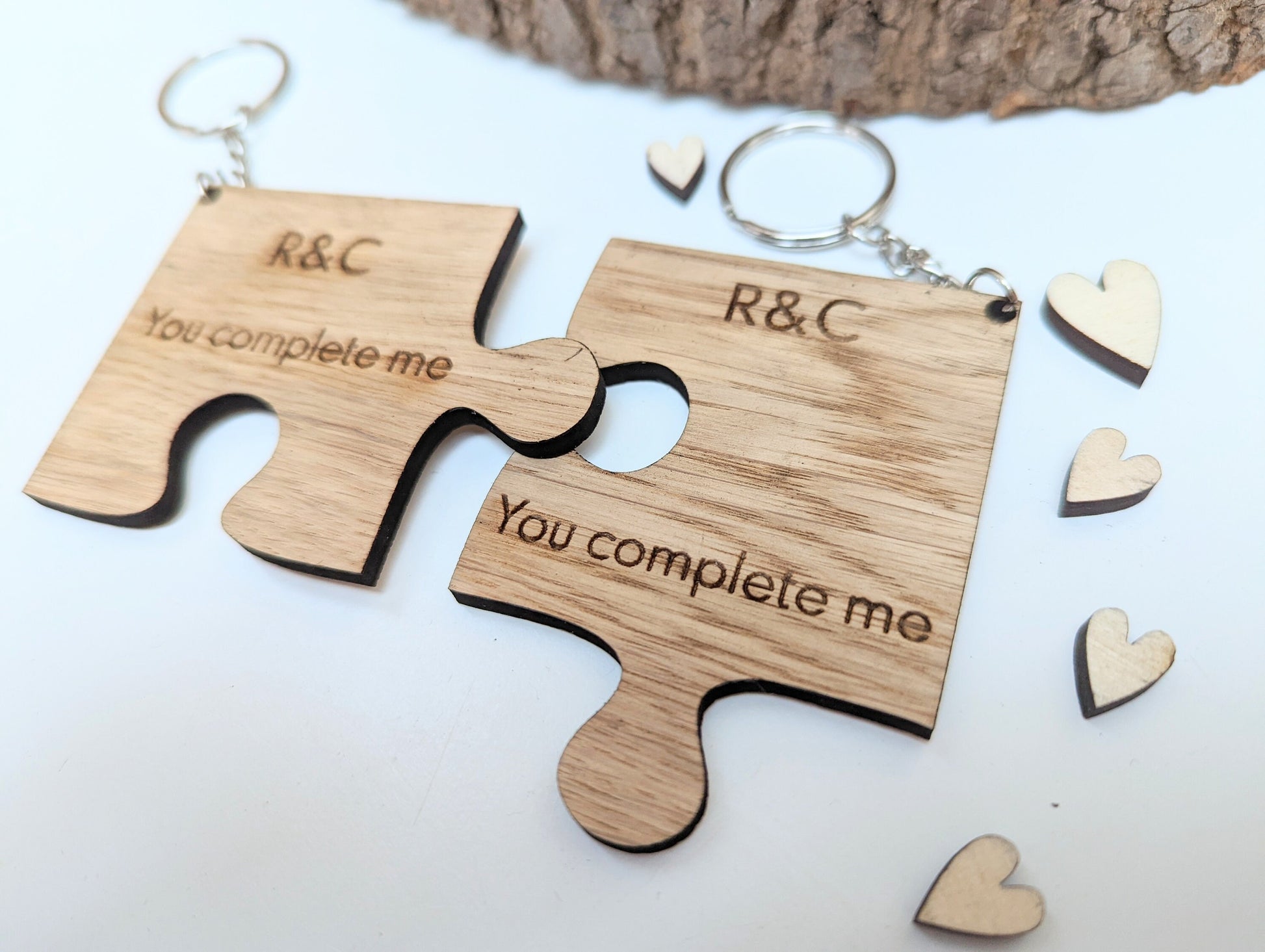 You Complete Me Personalised Jigsaw Keyring, Wooden Valentines Jigsaw Keyring with Initials, You Complete Me Jigsaw Keyring.